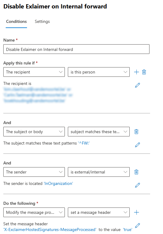 Mail Flow Rule bypassing Exclaimer